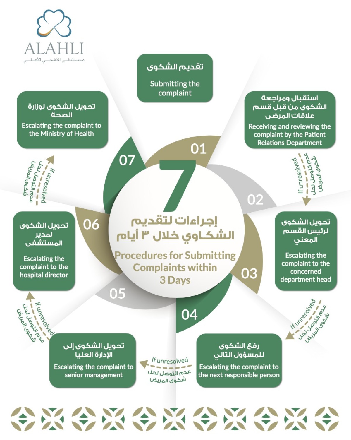 “Dear Valued Visitors, for any inquiries, assistance, complaints, or suggestions, kindly contact the Patient Affairs Department and we will be happy to assist you”